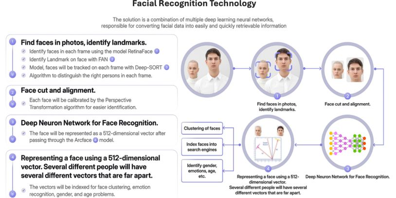 Our facial recognition technology is a sophisticated biometric system that utilizes algorithms and machine learning techniques to identify and verify individuals by analyzing facial features. InterLink ID technology captures an image of a person’s face using cameras or smartphones or desktops, then processes the data to extract unique characteristics such as the distance between their eyes, nose shape, and jawline contours. The extracted features are converted into a numerical representation known as a facial vector, which is compared against existing databases to find potential matches.